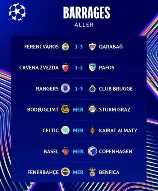 3场主队全部输球!欧冠附加赛首回合赛果:流浪者1-3布鲁日
