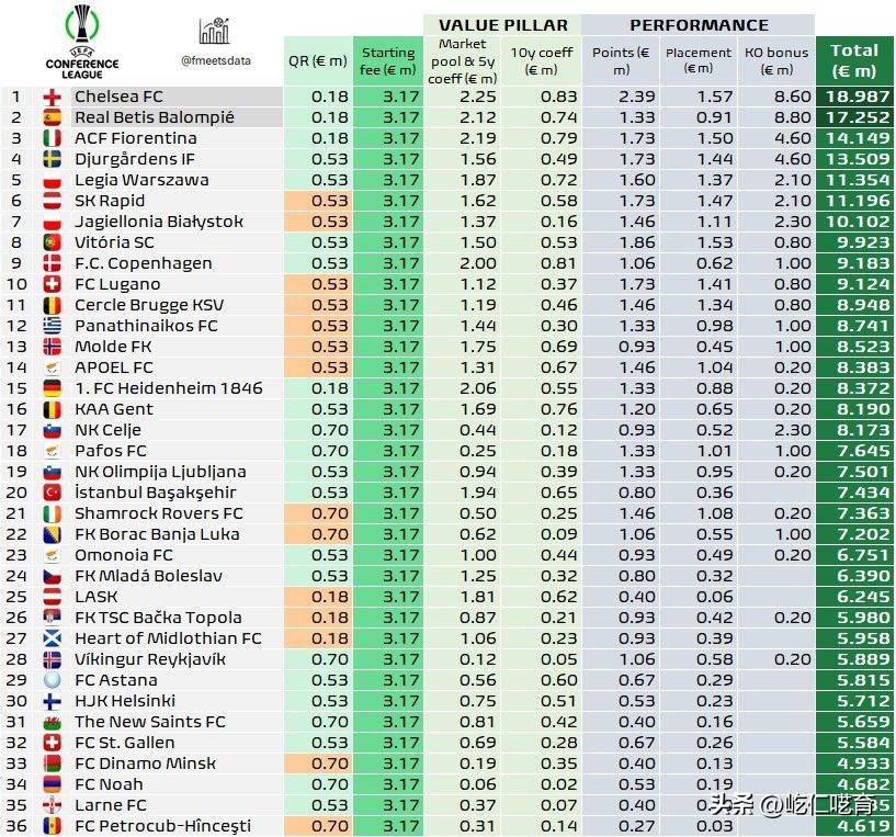 切尔西的情况也是如此。在上赛季的欧协联中,切尔西作为冠军,13场比赛的总奖金为2598.7万欧元,单场仅为199.9万欧元。但在世俱杯,他们的单场奖金几乎达到1400万欧元(约合1637万美金),性价比瞬间飙升。
